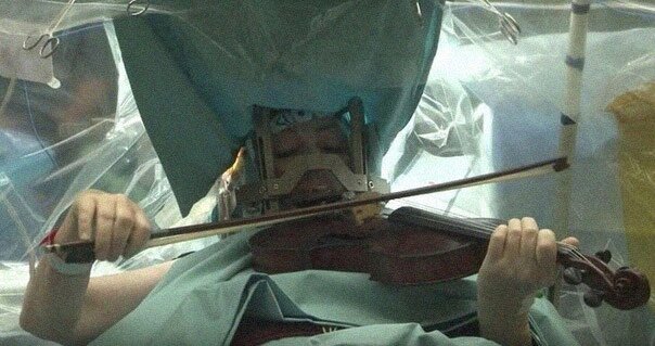 Человеческий мозг не чувствует боли. Операции на нем проводят без анестезии, чтобы человек был в сознании. Если пациент музыкант, то врач как правило просит его поиграть на музыкальном инструменте прямо в ходе операции. В процессе игры на инструменте работает весь мозг, и если врач допустит ошибку, то пациент сразу перестанет играть.