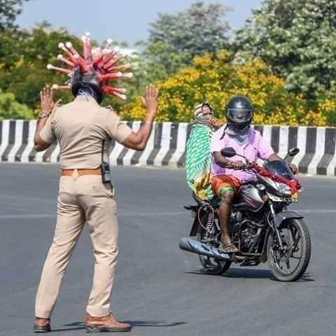 Полицейские в Индии наряжаются в коронавирус, чтобы таким образом загнать людей по домам
