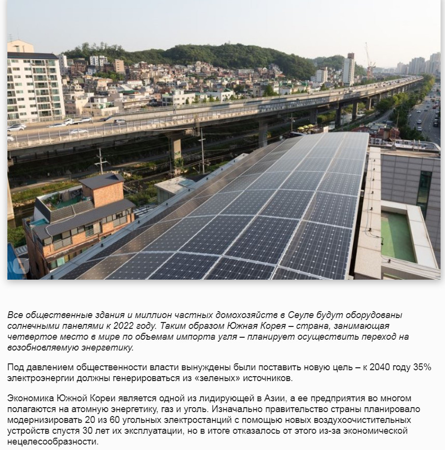 К 2022 ГОДУ В СЕУЛЕ ВСЕ ОБЩЕСТВЕННЫЕ ЗДАНИЯ И ЧАСТНЫЕ ДОМОХОЗЯЙСТА ОБОРУДУЮТ СОЛНЕЧНЫМИ ПАНЕЛЯМИ