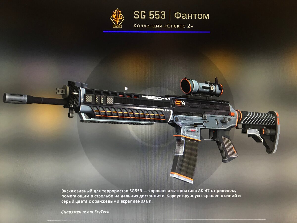 Привет, сегодня я расскажу вам про ещё один скин в cs:go на sg553. Скин называется «Фантом» после полевых испытаний. Этот скин я купил давно и по сей день хожу с ним и мне он совсем не надоедает. И купить его можно всего за 60 рублей!!! Как по мне это очень дёшево для такого скина!!! Советую вам приобрести этот крутой скин на sg553