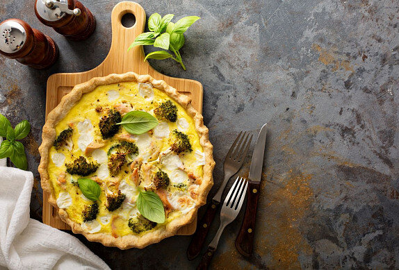 Пирог с брокколи Разберите брокколи и варите около 10 минут в подсоленной воде. Йогурт, сливки и яйца взбить, добавить тертый овечий сыр, посолить, обжарить и приправить мускатным орехом. Разогреть духовку до 200 ° С. Смазать форму для выпечки маслом и посыпать панировочными сухарями. Добавьте брокколи и сыр. Положите оставшиеся хлопья масла и запекайте около 20 минут. Вегетарианский пирог В миске смешать творог с маслом, добавить яйца и чайную ложку соли. Смешайте муку с разрыхлителем и процедите в миску. Мы сделаем гладкое тесто. Раскатать тесто на рулет и посыпать лепешкой диаметром около 24 см. Смажьте круглую форму диаметром около 24 см, вставьте тесто и проткните его вилкой в нескольких местах. Морковь нарезать ломтиками, паприка без косточек. Сливки взбить с яичным желтком, приправить солью, перцем, добавить перец и тертый мускатный орех. Выложить подготовленные овощи на тесто, залить сливками и украсить листьями петрушки. Выпекать в предварительно разогретой духовке пр