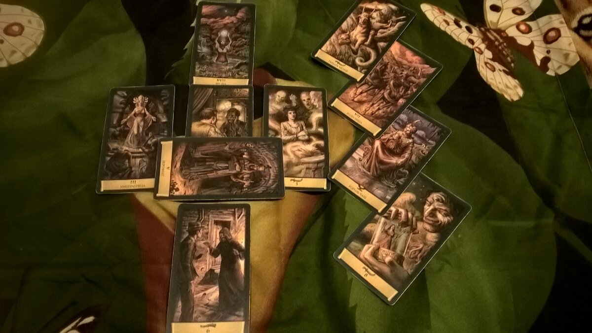 Расклад «Кельтский крест» - наиболее удобный из многих раскладов за счёт удобства трактовки, поэтому, мы воспользуемся именно им. Рабочая колода - Таро Чёрный Гримуар.