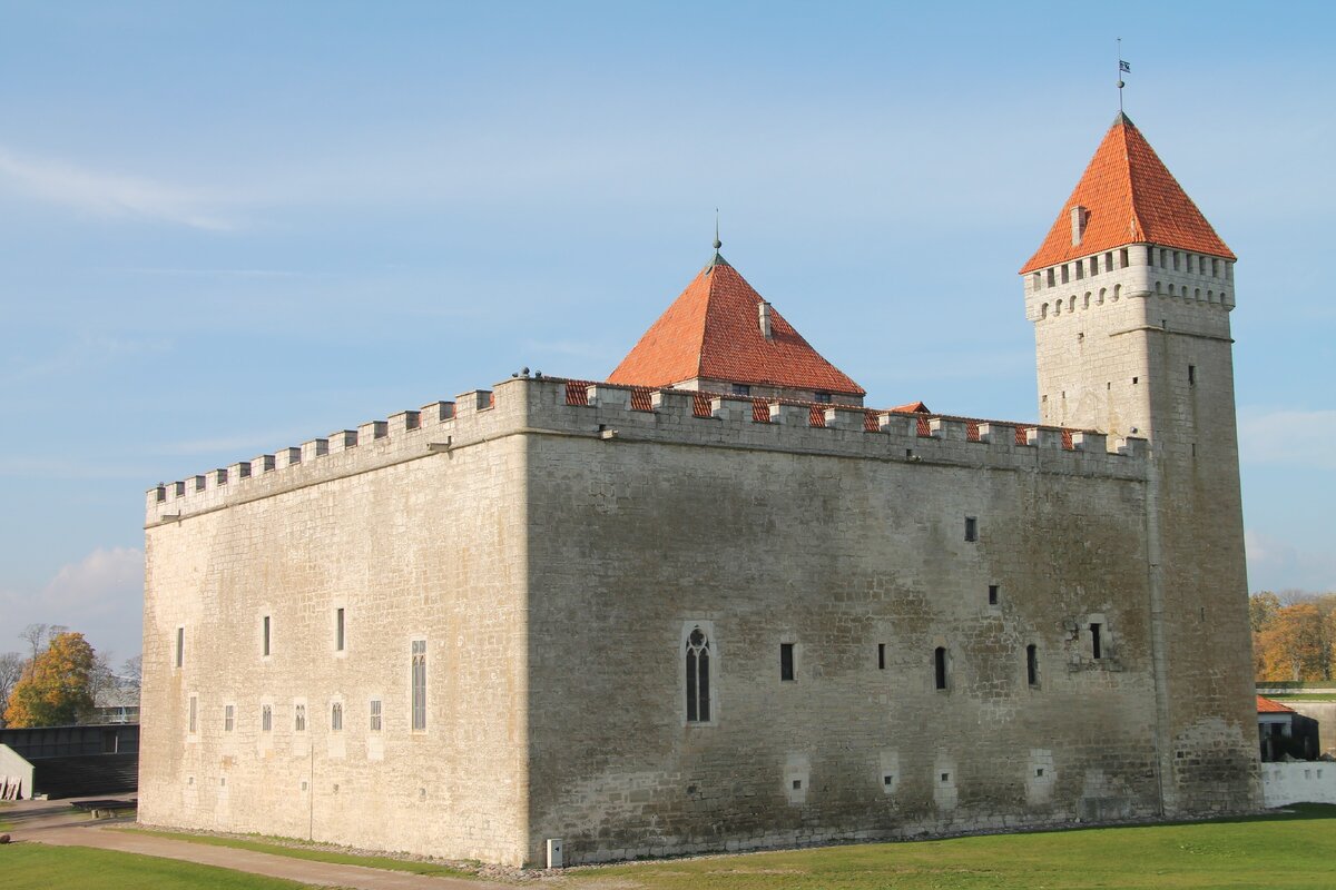 Остров Сааремаа самый крупный остров в Эстонии. Расположен в Балтийском море. На острове построен средневековый замок Курессааре (Аренсбург): Замок Аренсбург-назад в средневековье. Замок был построен Ливонским орденом в 1345 г. и на тот момент являлся практически неприступным: За счет своего островного положения Аренсбург является наиболее сохранившимся в Эстонии: Бросается в глаза геометрическая выверенность и компактность замка. В замке есть две башни, одна из которых выглядит неприступной для средневековья: Не менее интересно во внутреннем дворе: Территория замка весьма благоустроена: Внутри Аренсбурга аутентичные интерьеры: В замке устроен интересный музей: Музей больше напоминает краеведческий. Есть экспонаты, связанные с геральдикой: Имеются артефакты советской эпохи: Периметр замка опоясывает невысокий вал с бастионом,по которому можно прогуляться: За валом распологается ров, наполненный водой: По улицам столицы острова Сааремаа. Помимо замка в Курессааре есть много