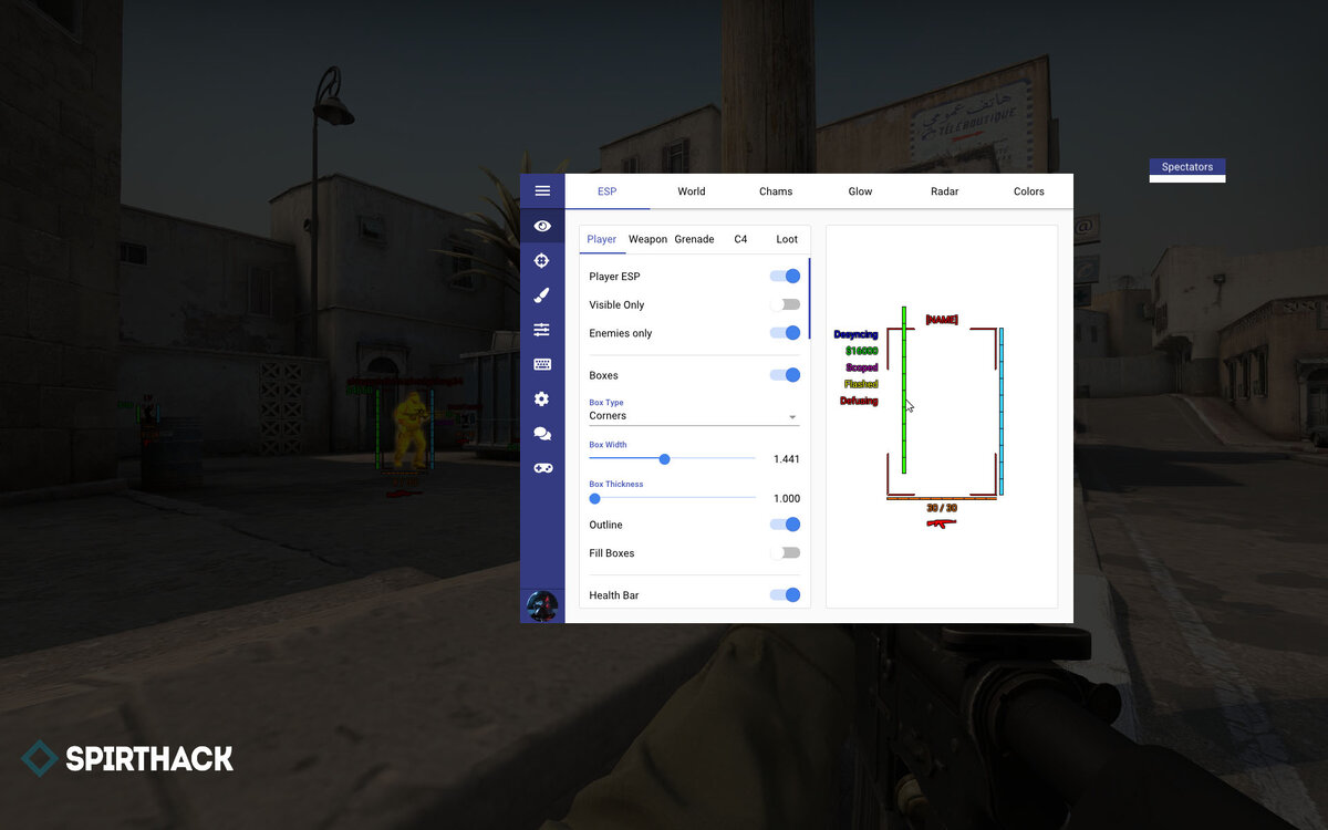 2 самых популярных чита на CS:GO 1:Spirthack Это приватный чит с большим функционалом. Отличие от всех остальных читов является ломание лобби, то есть вы мешаете игроку например:он не сможет принять игру и может не зайти в катку. Также есть чат, можно пообщаться с обладателями Чита. Стоит он на 30 дней 300 руб. Как я считаю не большая цена. 2:Freeqn Чит создан для жёстких килов. Он сосредоточен больше на аим.Крутой , и можно купить на 1 день 50 рублей, тут рассказывать нечего, лучше купить и опробовать.