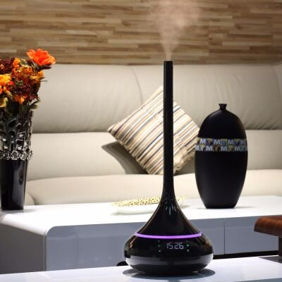 Ультразвуковой аромадиффузор – это электрический прибор, который предназначен для распыления эфирных масел или специальных ароматических концентратов. Он сочетает в себе сразу несколько функций – ароматизация, арома увлажнитель и декоративный светильник. Чаще всего аромадиффузор используется для ароматерапии, в качестве альтернативы привычной аромалампе со свечой. В отличии от аромалампы, диффузор прост, удобен и безопасен, так как не содержит открытого огня и нагревательных элементов. Если вместо эфирных масел добавить парфюмерные концентраты, то аромадиффузор также с успехом может использоваться в качестве ароматизатора для небольших помещений. Принцип работы Как бы не выглядел аромадиффузор внешне, работают они все по одному принципу. Это не просто электрическая аромалампа, в них используется технология ультразвука. После включения прибора, вода и арома масла, под воздействием ультразвука, смешиваются, а затем разбиваются на мельчайшие частицы. Эта смесь испаряется в виде влажного