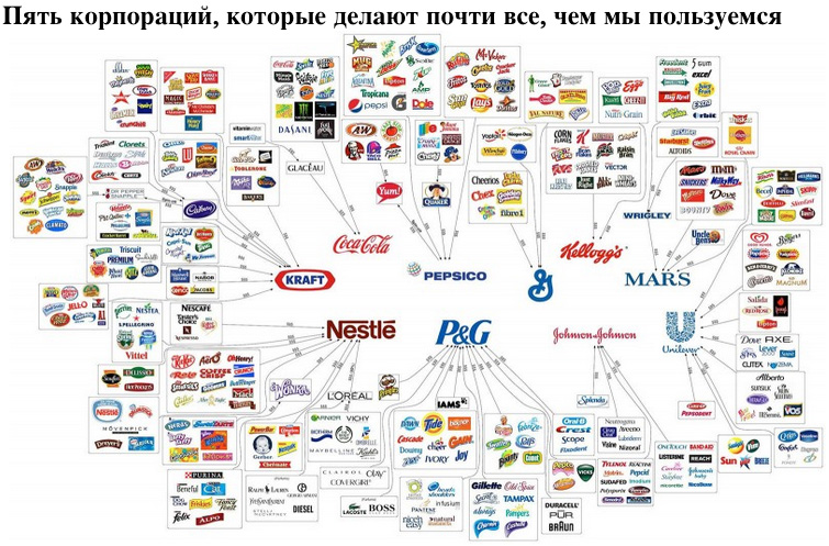 На схеме поименованы десять ТНК, но, по мнению автора публикации, они также друг от друга зависимы, поэтому надо брать за отправную точку лишь пять субъектов, принимающих решения. Другое исследование С.Витани показало, что всеми процессами в экономике земного шара управляют никак не больше 50 холдингов. Именно этот узкий круг ограниченных компаний собирает практически всю дань с потребителей витальных товаров и услуг, не взирая на политические границы. Все они встроены в более крупные финансово-промышленно-торговые конгломераты, которые диктуют всему человечеству свои условия. Миру на уровне КПО навязывается американское определение рыночных методов управления, демократии и либерализма: «все прочие страны обязаны выполнять наши указания, но они не имеют права делать то, что делает США по всему миру». Мировой гегемон не оставляет для рыночных отношений даже квадратного миллиметра. А реализуют они свое тоталитарное господство через 5–10 ТНК.