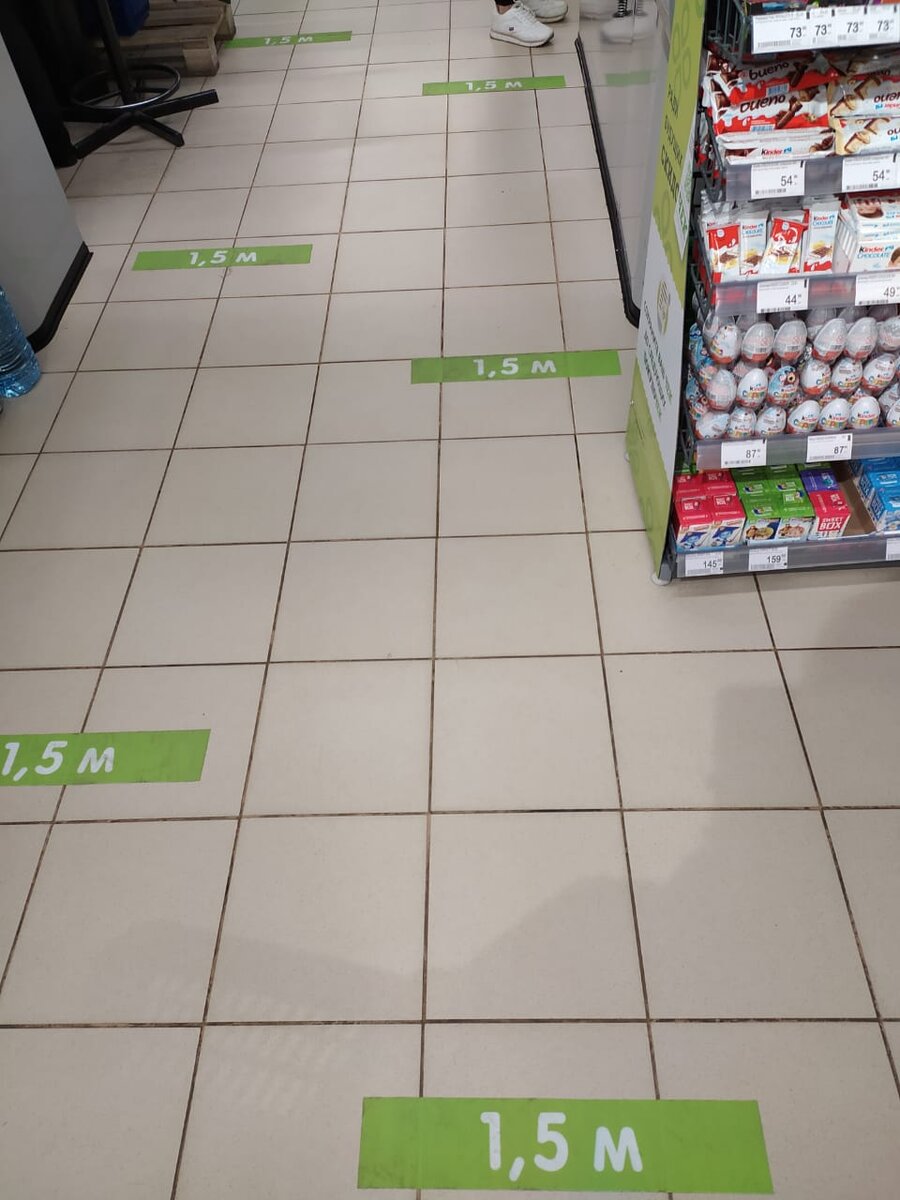 Социальная дистанция в действии. В чеховских магазинах разметили очередь.
