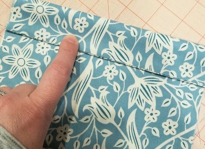 Теперь заложим складки. Разложите деталь так, чтобы необработанные края были по бокам, а шов снизу. Отмерьте от нижней линии 3,8 см, поставьте метку и проведите горизонтальную линию. Отмерьте от этой линии вверх 2,5 см и проведите вторую линию