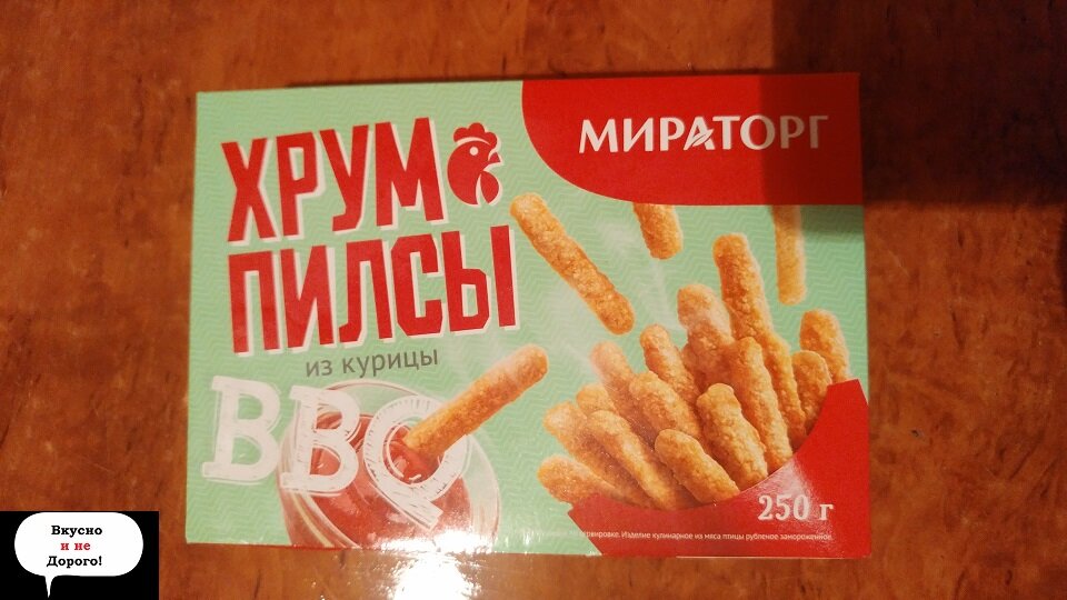 Доброго всем времени суток! Расскажу немного предысторию, вообщем закупался в "пятерочке" продуктами, а так же параллельно думал, чтобы такого купить дабы немного скрасить вечерок и чтобы на обзор было, подошел я в общем к холодильнику где продавались замороженные полуфабрикаты и увидел акцию на так называемые "хрумпилсы" от компании "мираторг", ну думаю это что-то интересное, к тому же цена была 89 рублей вместо 150, хотя честно говоря дороже 100 рублей я бы их наверное и не купил, потому как вес всего 250 грамм, те же куриные "наггетсы" продают по 300 грамм. Но не суть, в первую очередь данный полуфабрикат очень манит своей красивой упаковкой, тут нужно отдать должное маркетологам и дизайнерам данного продукта, все выглядит красочно и в красивых светлых тонах. По внешнему виду данные палочки чем то даже напоминают картофель фри, так же чем мне приглянулась данное изделие, так это тем что мы видим надпись "bbq" что обозначает "барбекю", а это значит есть надежда на то, что эти палочк