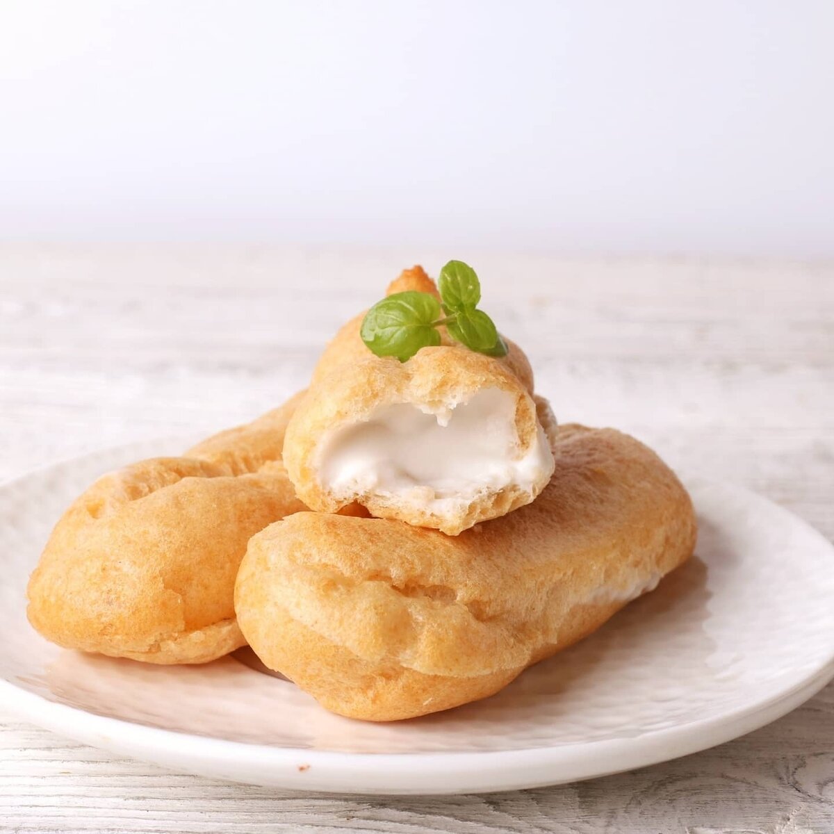 5. Готовому крему дать полностью остыть, затем накрыть плёнкой и убрать в холодильник на 4 часа. Наполнить кремом заготовки. Я просто разрезаю заготовки вдоль и промазываю кремом, но можно с помощью кондитерского мешка.