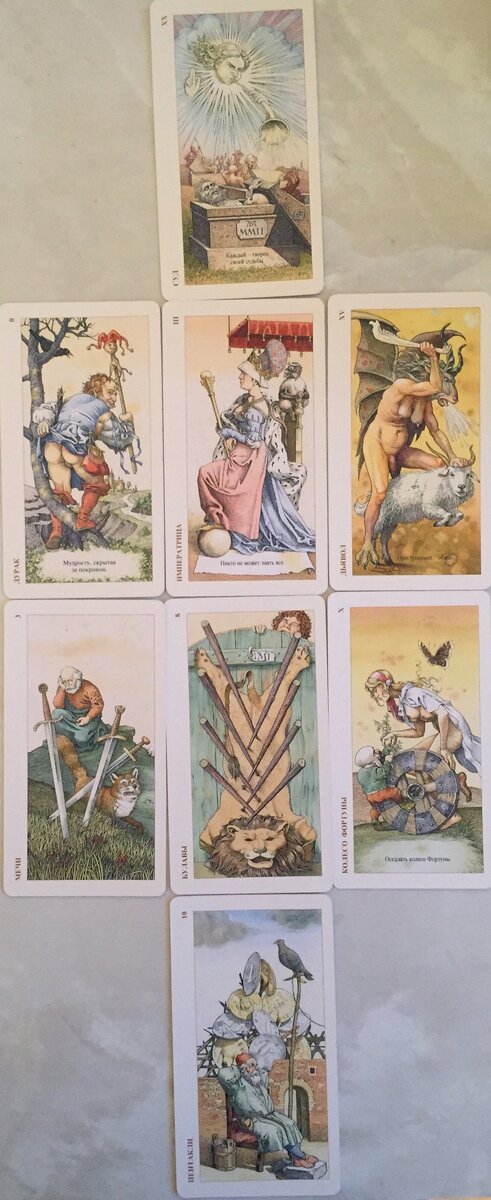 Доброго времени суток, дорогие подписчики и гости моего канала! Расклад общий. Записывайтесь на консультацию: WatsApp-+7 930 004 72 35 или по e-mail: Rasklady87@inbox.ru. Все консультации платные! 1 карта- Ситуация с деньгами в настоящее время.10 пентаклей. Финансовая стабильность, уверенность в завтрашнем дне.Деньги у Вас есть, и это Вас расслабило, Вы думаете, что это все о чем можно мечтать, Вы не стремитесь не данный момент к большему.На душе у Вас спокойствие, удовлетворение. 2 карта-Чего не хватает для того, чтобы добиться желаемого притока денег в жизнь.Колесо фортуны. «Оседлать колесо фортуны». Вам не хватает удачного момента, быть может когда этот момент наступает, Вы им не пользуетесь.Перед Вами открываются периодически возможности, а Вы их упускаете.Нужно уметь рисковать, и как говорится всему своё время, не упускайте возможностей. 3 карта-Как деньги могут сделать Вас сча