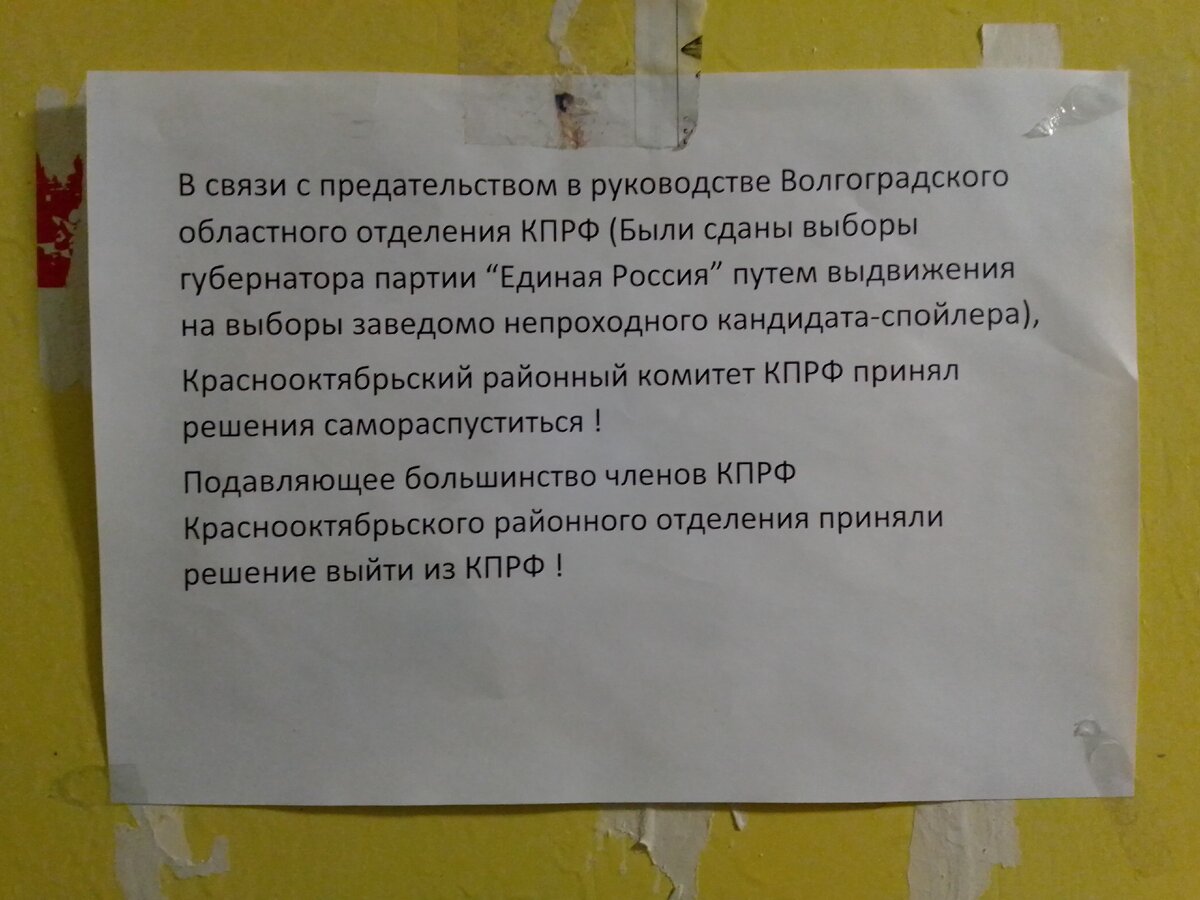 В редакцию радиостанции «Говорит Москва» поступило обращение от жителя Волгограда Максима Шершнева. Он пожаловался на произвол со стороны руководства местного областного комитета Коммунистической партии РФ. По его словам, большинство членов Краснооктябрьского райкома вышли из партии из-за недовольств её управлением. По той же причине политические объединения покинули люди из Кировского, Даниловского, Калачёвского, Тракторозаводского и других отделений. Уточняется, что коммунисты в Волгограде требуют отставки первых секретарей обкома Тамары Головачёвой и Николая Арефьева. В интервью радиостанции «Говорит Москва» председатель центрального комитета партии «Коммунисты России» Максим Сурайкин рассказал, что одобрительно относится к решению членов КПРФ, вышедших из партии. «Если люди руководят обкомом как собственным коммерческим предприятием, решают свои личные вопросы, устраивают родственников на работу, откровенно торгуют интересами партии, люди будут сначала бороться и требовать отставки
