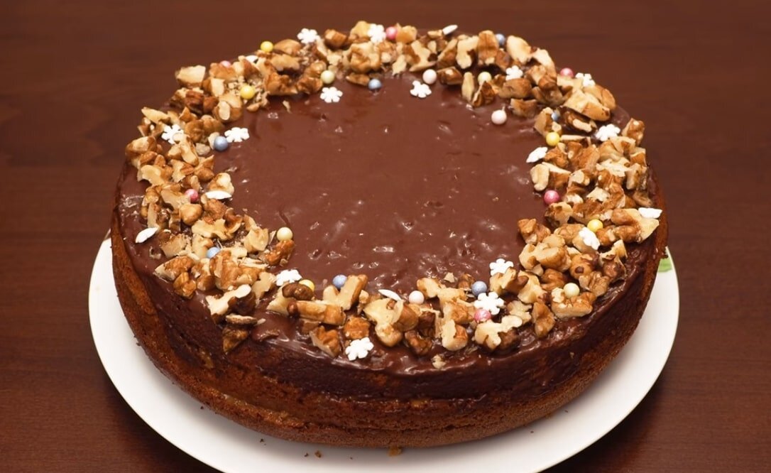 - Второй корж- 500г сахара, 250г молотых орехов, 3 яйца, сок двух лимонов или 1/2 стакана сметаны, 250г измельченных орехов или миндаля.