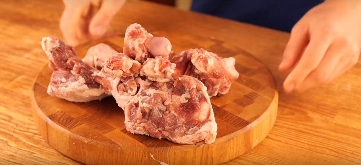 И так начнем с бульона,для него нам нужны свиные кости! Затем берем кастрюлю и наполняем её водой и отправляем туда кости.