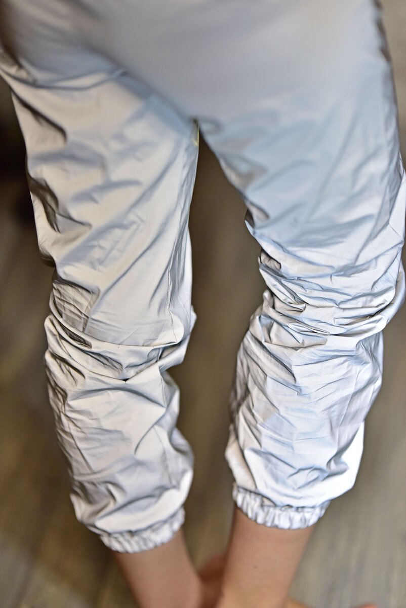 Эта вещь действительно привлекает к себе внимание. Ещё бы, ведь брюки действительно светятся! А достигается такой эффект за счёт ткани, точнее, за счёт её покраски. Я разглядела мельчайшие Светоотражающие частички. По всей видимости, именно из них состоит краска для ткани🤷♀️ в любом случае, смотрится это круто👍 В этих штанах крута не только "подсветка". Они отлично садятся по фигуре и очень красиво смотрятся. Хотя по крою, вроде бы, ничего необычного, но эта вещь отлично подчеркивает все достоинства и скрывает недостатки женской фигуры. Потому и выглядят штаны в жизни даже лучше, чем на картинке Не смотря на то, что стиль спортивный, для занятий спортом такие брюки не сильно подходят: ткань не дышит. А вот для прогулки - самое оно, особенно в ветренную погоду, ведь обратная сторона медали такой недышащей ткани - непродуваемость👍 Сшито добротно: швы ровные и аккуратные, к качеству ткани тоже нет претензий. Доставка заняла недели 3 до РнД Штаны есть только в сером цвете, в трех р