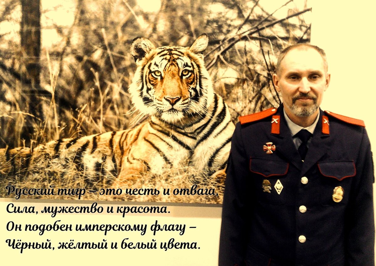 Русский тигр – это честь и отвага, Сила, мужество и красота. Он подобен имперскому флагу – Чёрный, жёлтый и белый цвета. Русский тигр – зверь, не знающий клетки.