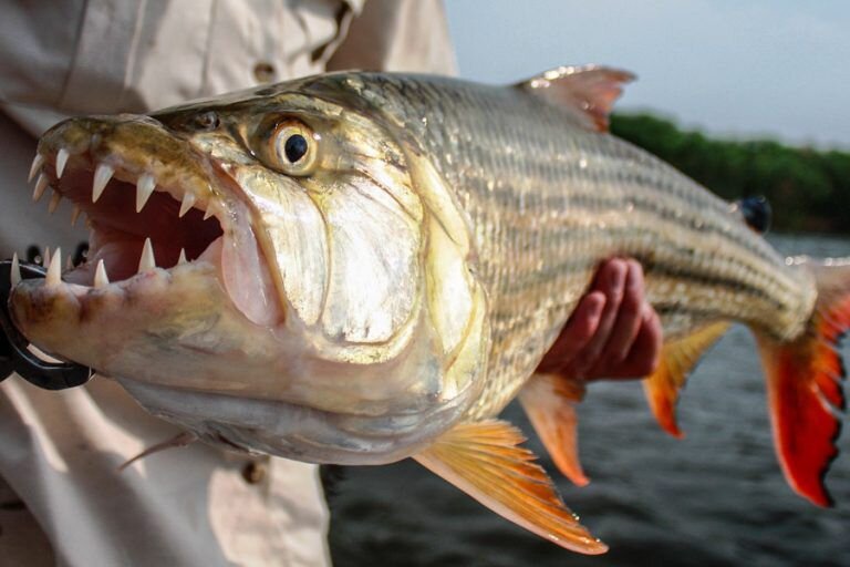 Тигровая рыба Голиаф Эта рыба водится в реках Центральной Африки. Рыба-демон или гигантский гидроцин может вырастать до 2 метров в длину. Весит рыба 50 кг. Данный представитель семейства африканских тетр имеет 32 острых зуба, которыми можно без особых усилий разрывать плоть. У этого хищника превосходный слух. Голиаф способен напасть на человека или крокодила, если сильно проголодается. Рыба-камень Несмотря на свой малоактивный образ жизни, эти небольшие рыбы весьма агрессивны. Рыбу-камень или бородавчатку можно встретить на мелководье Тихого и Индийского океанов. На спине у данного представителя семейства скорпеновых имеется несколько ядовитых шипов. Яд рыбы-камень разрушает эритроциты, а также поражает нервную систему человека. Гигантский пресноводный скат Эта рыба обитает в водоемах Южной Америки. Пресноводный скат весит 900 кг. Длина тела рыбы составляет 5 метров. Животное имеет хвост в форме кнута, на конце которого находится ядовитое жало. От яда этой рыбы человек может умереть.