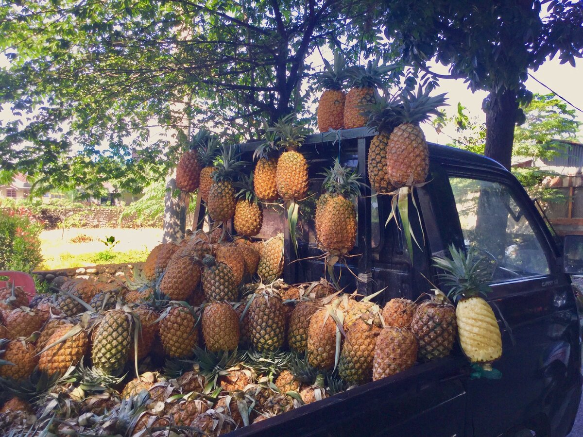 Надо взять собственно ананас (кстати, на бахасе он называется nanas, а на балийском — manas). Отрубить листья и донышко. Поставить вертикально и щедро срезать всю толстую коричневую кожуру. На фрукте должны остаться такие чёрные дырки с торчащей колючкой. Теперь нужно взять маленький острый нож и, двигаясь по спирали, аккуратно их вырезать. ⠀ Я знаю, что уже на второй колючке захочется бросить эту ювелирную работу. А если всё же доведёте дело до конца, то от ананаса почти ничего не останется. Но зато... я честно пыталась придумать хоть одно «зато», но не вышло. Ажурная чистка ананасов это абсолютно бесполезный навык в российских реалиях, как ни крути. ⠀ Тем более, что это ещё не всё. После всех мучений, оставшуюся жалкую кочерыжку нужно натереть солью, а потом как следует помыть. Только после этого ананас можно будет наконец-то порезать на кусочки и съесть. ⠀ Если пропустить последний пункт, или (что ещё хуже) сдаться на этапе вырезания колючек, или (что совсем уж беспредел) обгрызат
