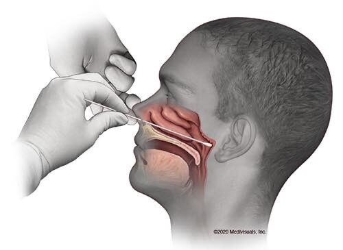 Вот так далеко врачи должны просунуть тестовую палочку в вашу носовую полость, чтобы взять мазок на коронавирус.