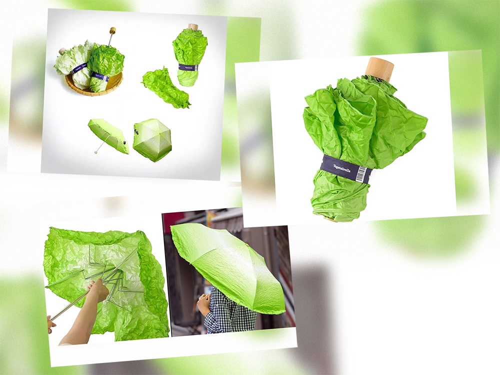 Зонтик в виде салатного листа – рано или поздно кто-то должен был его придумать. Выглядит очень реалистично, особенно в сложенном состоянии.