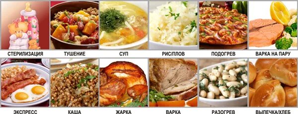 Какие функции выполняет мультиварка, и каковы ее технические характеристики, зависит от количества установленных программ приготовления, так называемых режимов. При всем многообразии моделей и их функциональных возможностей выделяются несколько основных режимов, которыми оснащены практически все виды мультиварок:
