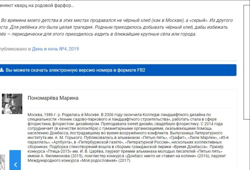 Подборка моих стихотворений на портале LIT-WEB http://lit-web.net/marina-ponomaryova-zdes-rukoyu-podat-do-boga/ как я поняла, после выхода в свет альманаха "День и ночь". Там же можно полистать (электронно) версии других литературных журналов (и альманахов) "толстячков".
