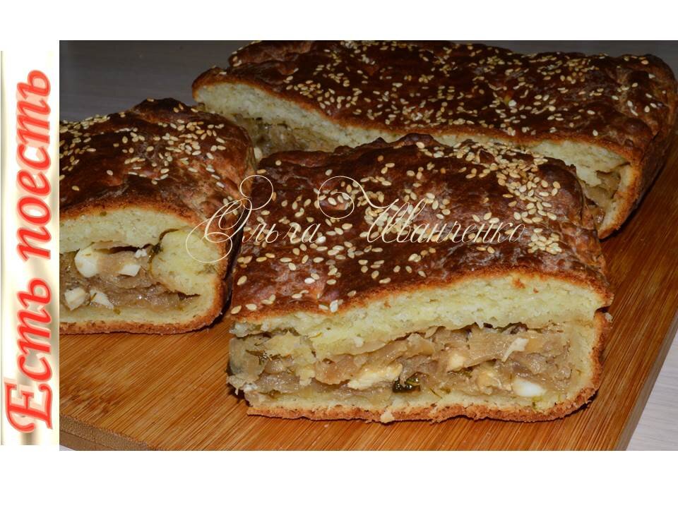 Смазать пирог молоком или желтком, сделать наколы вилкой или ножницами для выхода лишнего пара. Сверху посыпать кунжутом.