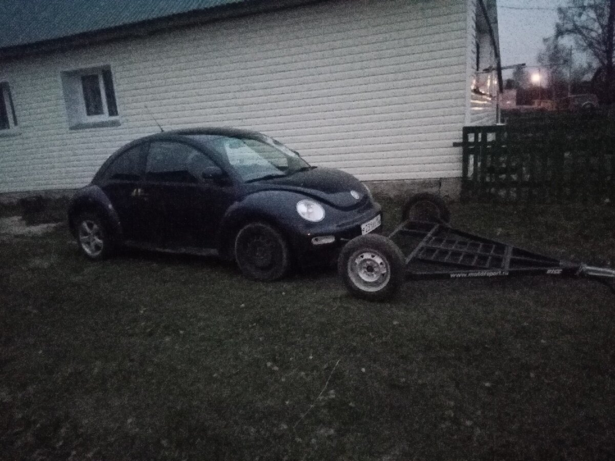 Привет друзья! В первой части я рассказывал о жесткой сцепке. Сегодня же речь пойдет про "подкат". Буксировка методом частичной погрузки. При данном способе, как можно догадаться, автомобиль частично грузят на что то. В моем случае это подкат. Штука это самодельная и не моя. Одолжил у электрика на работе. Битый не битого везет. Позвонил мне друг, с предложением перегнать его жука в малярку на ремонт. Но вот только ехать на веревке или своим ходом не вариант, так как лобовик разбит со стороны водителя. Жесткую сцепку адаптировать для жука реально (и нужно будет), но это долго. Так что мы решили одолжить подкат. Фото перед погрузкой автомобиля Надо отметить, что подкат делался для 2108 и ее то крепить явно удобно, а вот с жуком мы помучились сильно... но все же сумели ремнями притянуть колеса и двинули в путь, не забыв при этом о безопасности. Ехать нам было не очень далеко, всего то сорок километров. Хоть я проехал и не очень много, но кое что могу сказать.