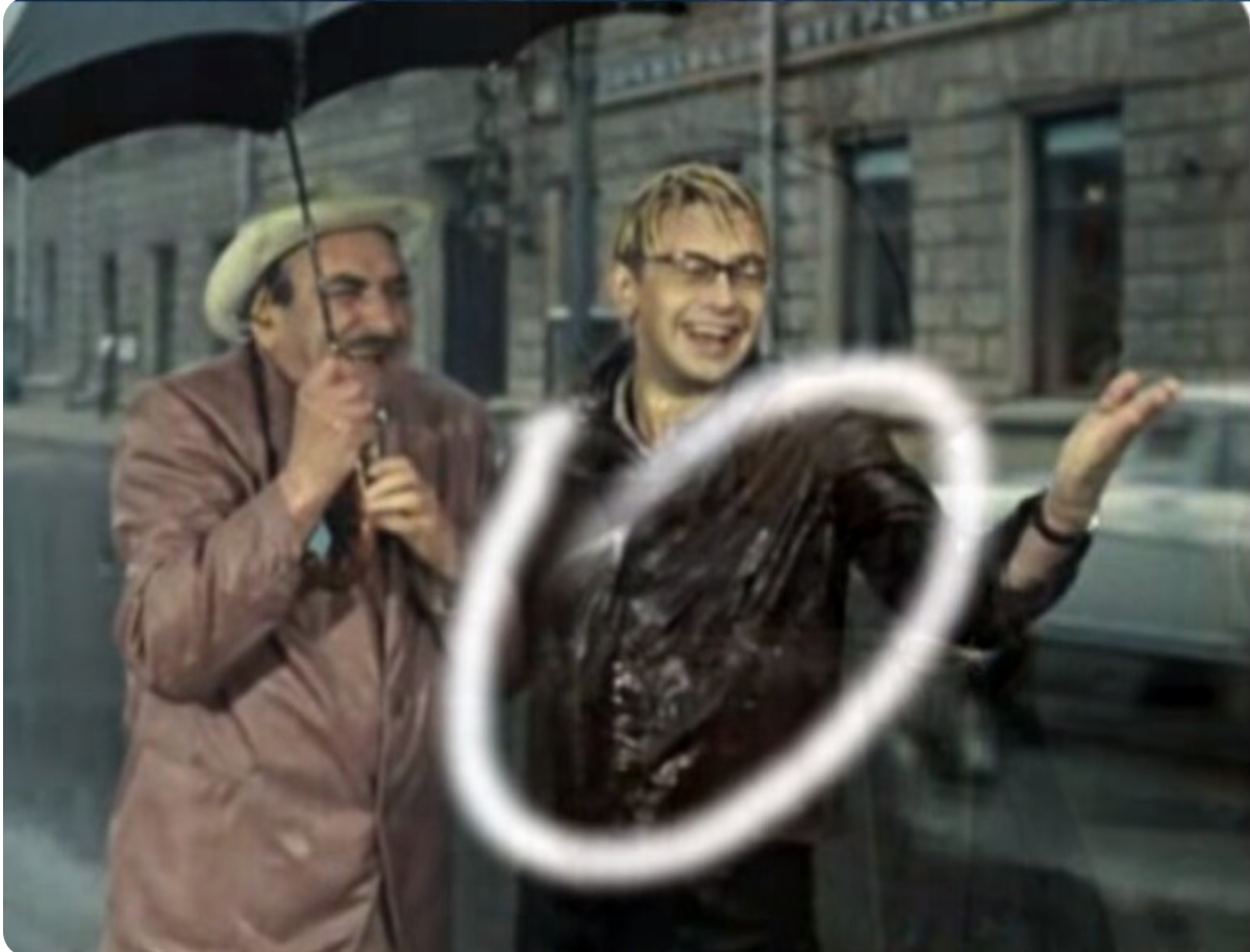Как только Шурик заходит в автобус- его промокшая куртка мгновенно становится сухой.