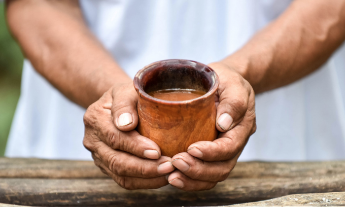 Шоколатль надо остудить, с высоты переливая его из одной емкости в другую. Напиток не только быстрее остынет, но и вспенится, насытившись кислородом. Эта пенистость для индейцев была обязательной. Все готово.