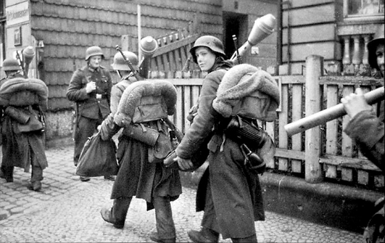 Непривычные для нас эпизоды происходили весной 45-го. На трассе баррикада, в обороне "фольксштурм". Земля около трассы водой затоплена. Наш офицер отправился парламентером к баррикаде, потом ведет 28 мальчишек с оружием. Все под полубокс стрижены. У мальчишек оружие отобрали и распустили по домам. Или другая картина. Перед нами амбар, а там засели власовцы. Отстреливались до последнего. Какие после этого разговоры с ними? Всех до одного уничтожили.