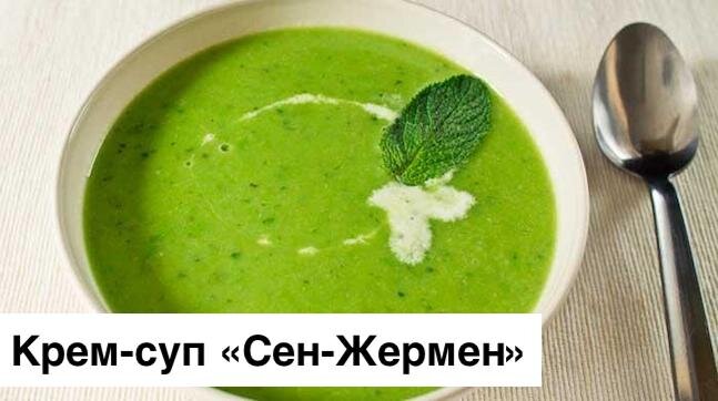 Диетические супы пюре. В наших кухонных традициях пюрированные первые блюда в основном готовят для маленьких детей, людей с проблемами желудочно-кишечного тракта или после операции. Но они фавориты высокой кухни, особенно авторский овощной суп диетический из зеленого горошка, тыквы или зерен кукурузы, с добавлением сливок. Ниже описан оригинальный старинный рецепт из французской кухни, который внесен в ТОП-10 супов всех времен и народов. Кстати, он попадает и в категорию диетический куриный суп. Крем-суп «Сен-Жермен» — ингредиенты на 1 порцию: Перед приготовлением крем-супа необходимо сварить куриный бульон. Чтобы почувствовать настоящий вкус блюда, используйте не бройлерную птицу, а «беговую». Для варки бульона, помимо репчатого лука, нужны белые коренья: петрушка и пастернак, а также морковь. Приготовление: Перед подачей диетический суп «Сен-Жермен» доводят до вкуса солью, перцем и сахаром. Украшают целыми зелеными горошинами, которые были отложены в самом начале. При желании вмест