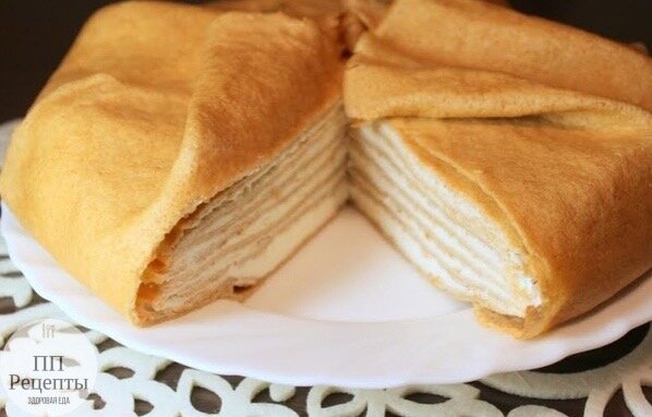 4.Верхний блин только посыпаем сыром и отправляем пирог в разогретую до 180 градусов духовку на 15 - 20 минут. Готовый пирог немного остудить и подавать горячим или холодным.