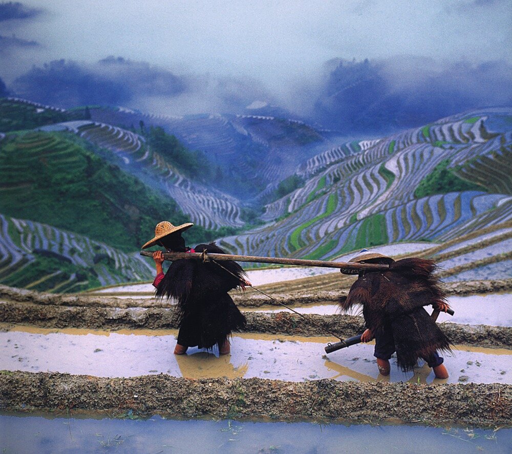 Выращиванием риса китайцы стали заниматься больше 9 тыс. лет назад, а потому весьма преуспели в этом деле. Более того, высаживать рис они научились не только на ровных полях, но и в горной местности со сложным рельефом. Отличный пример тому — это террасы Лонгджи, вырубленные в скалах вручную больше шести столетий назад. Такое расположение позволяло воде стекать естественным образом и заполнять собой поля. На самом деле рис не нуждается в таком количестве влаги, но это помогает уберечь посевы от сорняков и насекомых, да и к тому же смотрится очень красиво. Однако так, как на фото, террасы Лонгджи выглядят не всегда, а только летом, поэтому планируйте свою поездку на июнь или июль, если хотите застать рисовые террасы во всей красе.