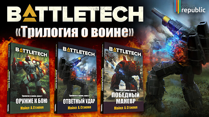 Размещена: Издательство Hobby World взялось за локализацию книжной серии BattleTech. В прошлом году была издана «Сага о Легионе Серой Смерти» Уильяма Г. Кита мл. И теперь издательство занято переводом следующих книг по вселенной — «Трилогии о воине» Майкла А. Стэкпола. Трилогия о воине» Майкла А. Стэкпола — три книги, связанные общим сюжетом. Книги будут изданы в твердом переплете и с дополнительными материалами — так же, как и «Сага».