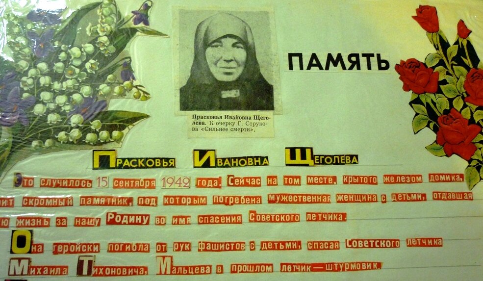 Был ли у Прасковьи выбор? Наверное, был. Она вместе с детьми могла бы убежать до прихода немцев и спрятаться, могла бы совсем не подходить к горящему самолету, где без ее помощи наверняка бы сгорел летчик. Могла и выдать его, указав направление, куда он пошел прятаться. Смотришь, за это фашисты могли детям шоколадку дать или губную гармошку, а ей самой паек из суррогатных продуктов. Но Прасковья поступила так, как поступила, как подсказывала ей совесть.