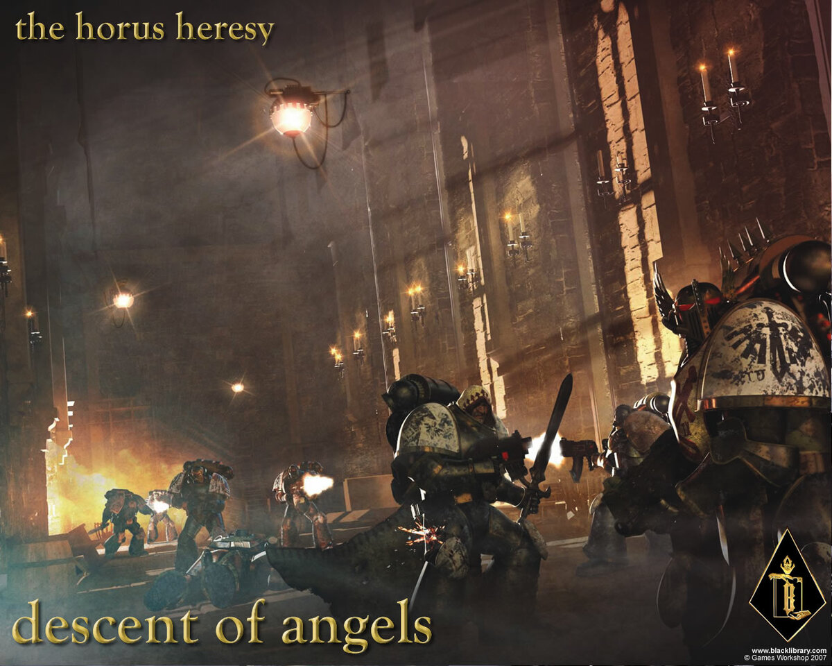 Итак, я наконец-то справился с очередной книженцией в цикле "Ересь Хоруса". Что могу сказать: "Сошествие Ангелов" не самая занятная литература в художественном плане, однако в ней достаточно много фактов, которые будут интересны для поклонников вселенной. Самый сок кроется в трёх последних страницах, но для их примерного понимания и значимости нужно знать, кто вообще такие Тёмные Ангелы, кто такой Лев Эль'Джонсон и предыдущие страницы книги :-) Поехали!