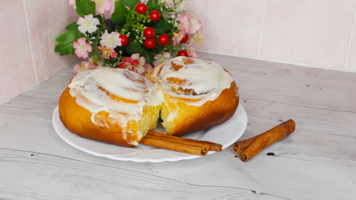⠀⠀Продукты: ⠀⠀ ⠀⠀Тесто: ⠀➡️ Дрожжи - 1 пакетик (11 гр) ⠀➡️ Соль – 1 ч.л. ⠀➡️ Сахар - 100 гр ⠀➡️ Мука - 500-600 гр. ⠀➡️ Молоко - 200 мл. ⠀➡️ Масло сливочное - 75 гр. ⠀➡️ Яйца - 2 шт. ⠀ ⠀⠀Начинка: ⠀➡️ Сахар -120 гр. ⠀➡️ Корица - 15 гр. (Я бы добавила больше, но больше не было дома) ⠀➡️ Сливочное масло - 80 гр. ⠀ ⠀⠀⠀Помадка: ⠀ ⠀➡️Творожный сыр - 70 гр. ⠀➡️ Сливочное масло - 30 гр. ⠀➡️ Сахарная пудра - 100 гр. ⠀ ⠀⠀⠀⠀Приготовление: ⠀ ⠀В миску наливаем теплое молоко, добавляем соль, сахар (2 ст.л. из общего количества), дрожжи, размешиваем и оставляем в сторону. ⠀Миксером взбиваем 2 яйца с оставшимся сахаром в пышную массу. Затем добавляем туда размягченное сливочное масло и взбиваем до однородности. ⠀Смешиваем обе составляющие теста и добавляем просеянную муку, замешиваем тесто, сначала с помощью ложки, затем руками. Тесто должно быть мягким, эластичным и не липнуть к рукам. Накрываем миску полотенцем и ставим в теплое место на час. ⠀Для начинки смешиваем