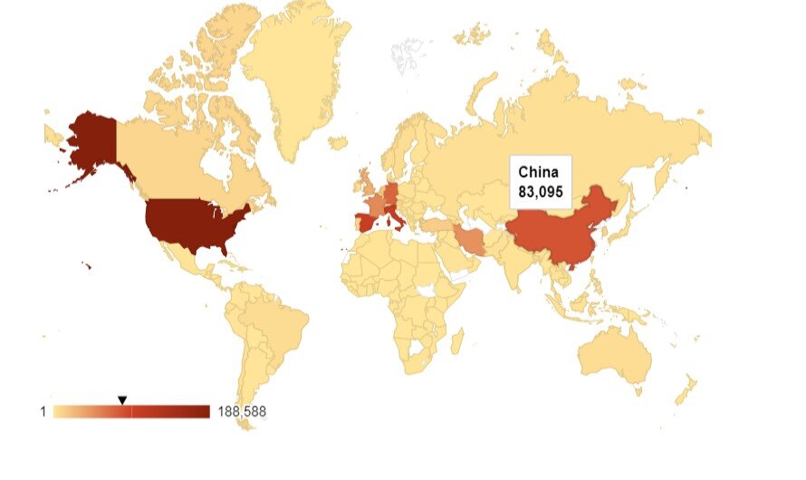 Карта распространения коронавируса COVID-19 gisanddata.maps.arcgis.com, где в режиме реального времени публикуются обновленные статистические данные Johns Hopkins University’s Center for Systems Science and Engineering (Johns Hopkins CSSE), свидетельствует, что по состоянию на 1 апреля 2020 в мире инфицированы 860 793 человек. Количество подтвержденных случаев во всем мире