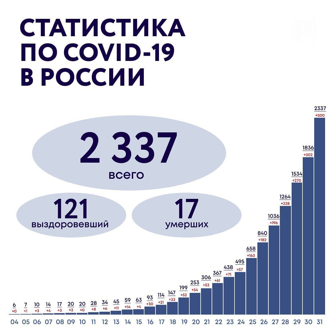 Сегодня 1 апреля. Самое время подвести итоги месяца. Статистика по заражениям в России нового коронавируса COVID-19 пока не самая утешительная, но приняты все соответствующие меры, чтобы в этом месяце мы увидели убывающую динамику в графике.