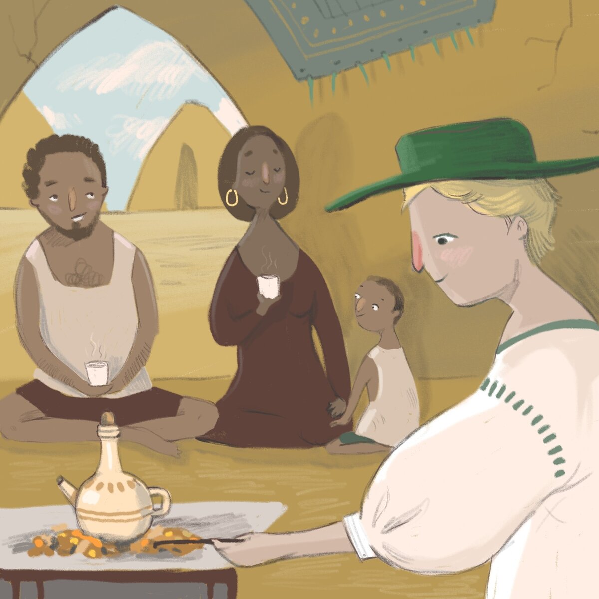 Подливала в пиалку черного, как ночь, маслянистого напитка из глиняного кофейника. Шуршала хворостом