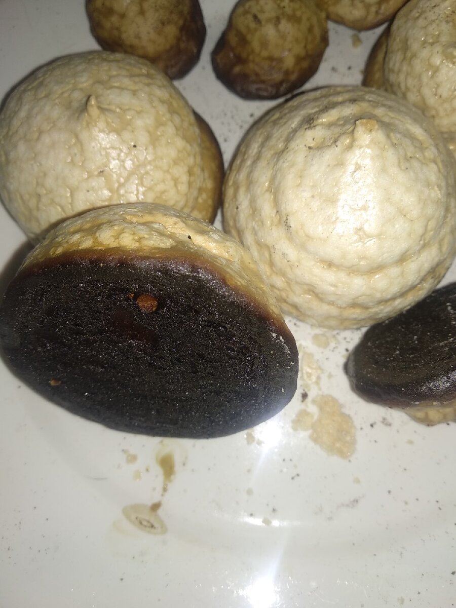 Достаточно долго всё никак не решалась приготовить домашнее безе. Рецепт, на вид, простой, из ингредиентов только яичный белок да сахар - казалось бы, что тут сложного?! Ну, вот, наконец я решилась попробовать его приготовить. На всякий случай, решила посмотреть рецепт в интернете, почитать советы людей, которые готовят безе не в первый раз. Учла все советы, посмотрела несколько рецептов: белки тёплые, сахар не крупный, взбивать начинала с маленькой скорости, сахар всыпала постепенно порциями. Тесто получилось изумительное! НО! На тех сайтах говорилось, что безе нужно готовить в духовке при 110 градусах от ЧАСА до ДВУХ часов! Было написано, что готовить МИНИМУМ час! Делала всё по рецепту! Однако, спустя тридцать минут я почувствовала запах жжёного сахара, но не придала значения. Ведь по рецепты нужно хотя бы час держать в духовке. Прошло ещё минут десять, запах стал намного сильнее, не выдержала, достала безе из духовки. Вот только, безе ЭТО напоминало очень отдалённо.