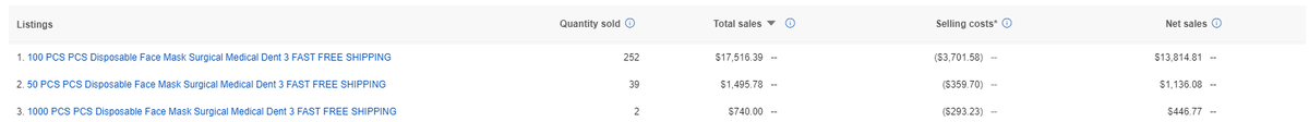 Подъехал кейс от подписчика. Короновирус захватил весь мир, ТОП-1 по упоминаниям в сети, более 90 тысяч людей заражённых, мы не смогли пройти мимо. Когда еще в России не начался дефицит масок, но это уже было в Китае. Мы решили затестить - это на ebay. Преимущество платформы, что оптовики и покупатели выходят на продавца и никак наоборот. Продавали на весь мир, кроме России. Основная масса продаж поступала на Китай, были заказы и в другие страны, но существенно меньше. Первым делом мы начали искать где купить большой объём масок, к этому вопросу подходили аккуратно, ибо вокруг много обмана. По аптекам желания не было, нашли на авито маски за 10р за 400 километров от нас. В этот же день поехали и купили их на 120 000Р , начали тестировать. Тест был сразу успешным, но когда хочешь заработать много, то надо действовать быстро. После того как мы запустили все это дело, продаж не было где-то сутки. Немного поиграв с объявлением, мы залетели в ТОП по запросу медицинские маски и тут нач