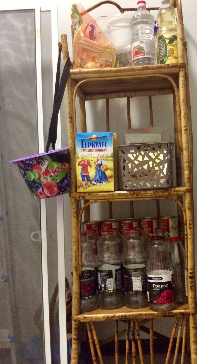 Этой этажерке не менее 60 лет, она была рядом со мной всю мою сознательную жизнь. Я помню, как запрокинув голову, пыталась рассмотреть предметы на верхней полочке. Как в один прекрасный момент, воспользовавшись стулом, обнаружила на ней завораживающие девчоночьи глаза вещи — немудреную мамину косметику. Пузатую картонную коробочку с ароматной рассыпчатой пудрой (конечно, половину просыпала на себя), прозрачный красноватый лак для ногтей с таким карамельным запахом, что хотелось его попробовать на вкус, и, конечно же, обязательные духи «Красная Москва» (в большом парадном флаконе и малюсеньком игрушечном флакончике). Ах, как хотелось, скорее вырасти и владеть всем этим богатством! Потом эта этажерка вместила все детские книги, альбомы и даже коробки с некоторыми настольными играми. А потом появился книжный шкаф и её отправили на дачу, где она добросовестно служила полвека, причём последнее десятилетие на открытой веранде. За это время мы поменяли три советские стенки и две постсоветски