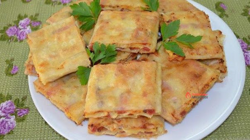 Жареный лаваш с сочной начинкой из колбасы и расплавленного сыра - простая, но очень вкусная закуска, которая никого не оставит равнодушным. Ингредиенты Лаваш – 3 шт. Яйца – 2 шт. Вода – 1 ст.л. Сыр - 100-150 г Колбаса – 200-300 г Зеленый лук – 0.5 пучка Петрушка – 0.25-0.5 пучка (по вкусу) Сметана – 3 ст.л. Горчица – 1 ч.л. (по желанию) Соль – по вкусу Перец черный молотый – по вкусу Растительное масло – для жарки Для приготовления закуски вам понадобятся такие ингредиенты. Подготовьте компоненты начинки. Нарежьте небольшими кубиками колбасу. Натрите сыр. Мелко нарежьте зеленый лук и петрушку. Добавьте сметану, горчицу, немного соли и молотого черного перца. Хорошо все перемешайте. В отдельную емкость разбейте 2 яйца. Добавьте 1 ст.л. воды, щепотку соли и молотого черного перца, а затем слегка взбейте смесь вилкой до однородности. Нарежьте лаваш на полоски шириной 7-8 сантиметров. Срежьте закругленные края полосок лаваша, чтобы их концы приобрели квадратную форму – так