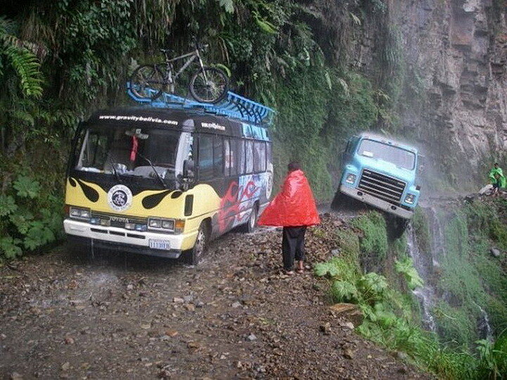 The North Yungas Road носит звание самой опасной дороги в мире. Она пролегает над огромной пропастью, а размеры самого широкого участка пути не превышают 3,2 метра. Некоторым крупным транспортным средствам приходится преодолевать узкие участки, нависая одним колесом над провалом.