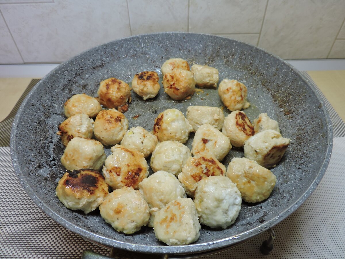 Формируем из фарша небольшие фрикадельки и обжариваем на растительном масле.