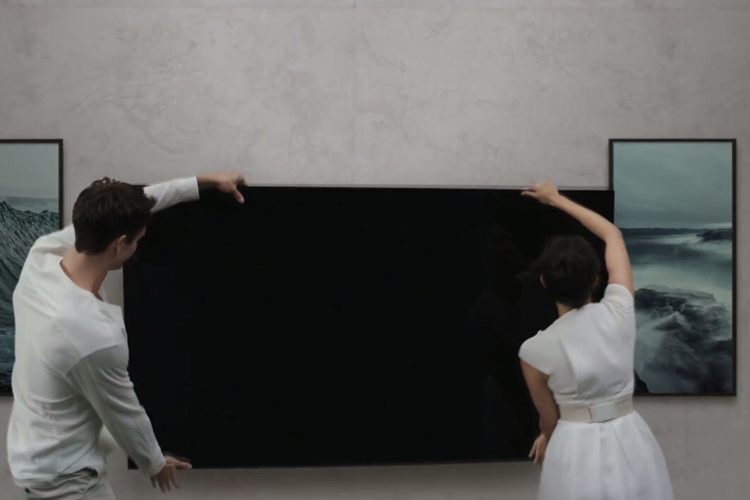 65-дюймовый экран имеет толщину менее трёх миллиметров и его можно повесить на стену, как картину.