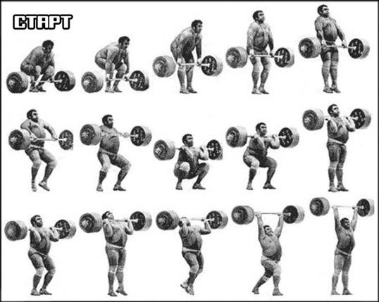 Всем привет, с вами снова Эдуард. Сегодня я вам расскажу про технику упражнения "Толчок штанги", всем приятного просмотра моей статьи. Сама техника толчка выглядит примерно так: 1) Отрыв штанги от земли, натянул спину, чтоб грудь накрывала гриф штанги. 2) Натягиваем спину и начинаем вставать со штангой, обязательно вставать ногами, если встаете спиной, можно получить травму. 3) Доводим штангу до положения "выше колена", спина остается в таком же положении, грудь накрывает гриф штанги. 4) Вот и довели штангу до места выпрямления спины, тут нужно резко выпрямить спину и сделать выход на носки и поднять плечи, то есть трапеции ровно вверх. 5) Подсед под штангу, раскидываем ноги шире на 3-5см и ловим штангу внизу. 6) Локоть не должен касаться колена, спина остается ровной и натянутой, если же спину заломает, то вас потянет вперед и будет очень тяжело удержать штангу на груди. 7) Начинаем вставать на прямой стопе и с ровной, нятуной поясницой. 8) Встали со штангой, локти в стороны, с