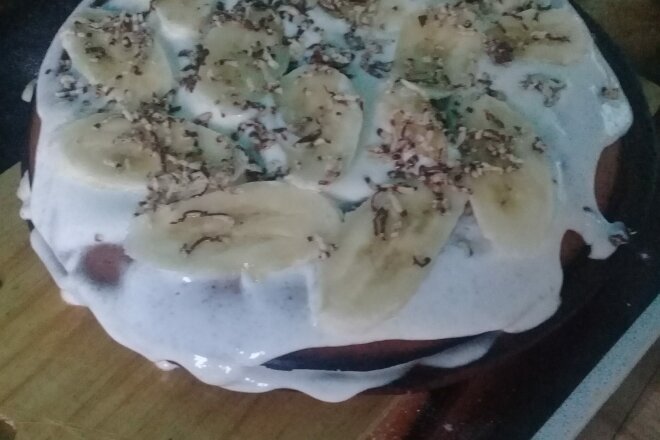 Шаг 2. Взбить сметану с сахаром. Коржи смазать получившимся кремом (можно добавить цукаты или орешки). Сверху притрусить какао, дать торту на кефире постоять и пропитаться. Через 3 часа легкий торт на кефире со сметанным кремом готов.